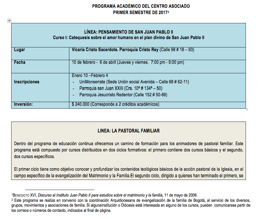 Este Centro está asociado al Pontificio Instituto Juan Pablo II para estudios sobre el Matrimonio y la Familia, con sede en Roma, fundado por Juan Pablo II en 1981. Actualmente, existen ocho secciones en diversos lugares del mundo. Colombia, está en proyecto de ser una de ellas.