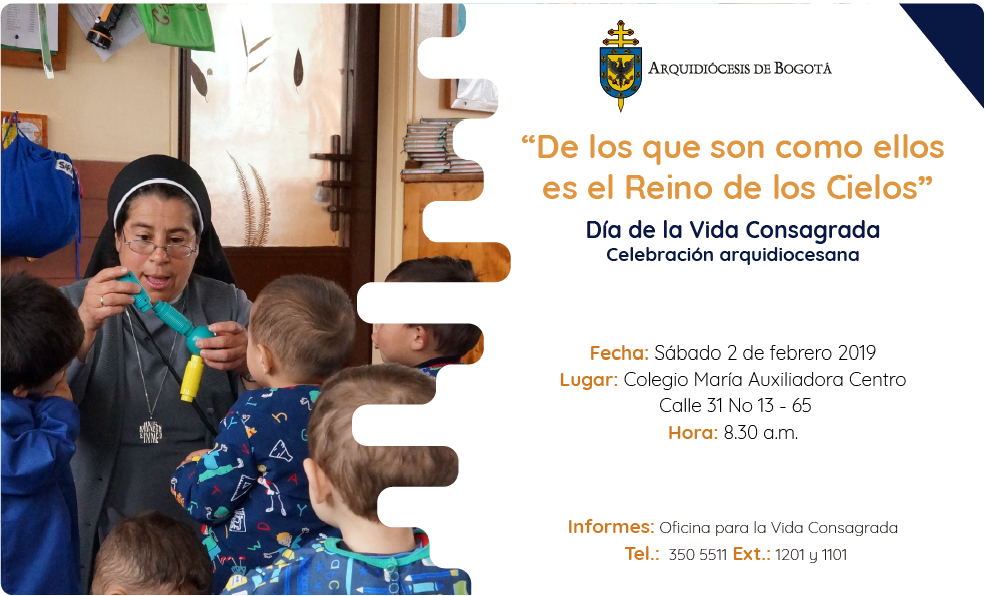 Centro de información Yo quiero Noticias Boletines Eventos Artículos Canonización Mensajes del Cardenal Cartas pastorales Homilías Mensajes La voz del pastor Documentos del Vaticano NoticiasDía de la Vida Consagrada - Celebración arquidiocesana1 de Febrero de 2019La Arquidiócesis de Bogotá, desde la Coordinación de Vida Consagrada, invitan a todos los miembros de la Vida Consagrada a la Celebración Arquidiocesana que tendrá…A continuación encontrará ubicación del Colegio: Like 0 Dislike 0 Noticias relacionadas Alerta a la comunidad: circulación de videos falsos del cardenal Luis José Rueda Aparicio ✅ Dona en tu parroquia Mensaje de Mons. Edwin Vanegas Cuervo, obispo auxiliar de Bogotá