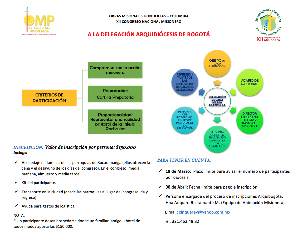 Centro de información Yo quiero Noticias Boletines Eventos Artículos Canonización Mensajes del Señor Cardenal Cartas pastorales Homilías Mensajes La voz del pastor Documentos del Vaticano NoticiasObras Misionales Pontificias - Colombia XII Congreso Nacional Misionero10 de Marzo de 2016 Like 0 Dislike 0 Noticias relacionadas Archivo del Plan de Predicación - 2024-2025 Tiempo para nutrir, cuidar y testimoniar la fe La Arquidiócesis de Bogotá celebró la ordenación de nuevos sacerdotes y diáconos